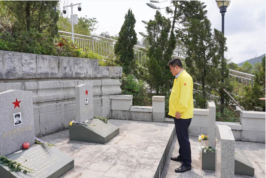 隨后,全體人員整齊肅立在革命烈士碑前,為革命烈士敬獻花圈,祭奠烈士英靈,向烈士墓碑鞠躬默哀,表達對革命烈士的無限敬仰之情。據(jù)了解,寶特控股公司(銀坑蠔場)原職工、烈士劉金水的墓碑修建在陵園之中,唐亮同志到墓碑前祭拜,認真聆聽烈士的英雄事跡。最后,全體人員瞻仰烈士陵園,追憶當年血與火的革命歷史。