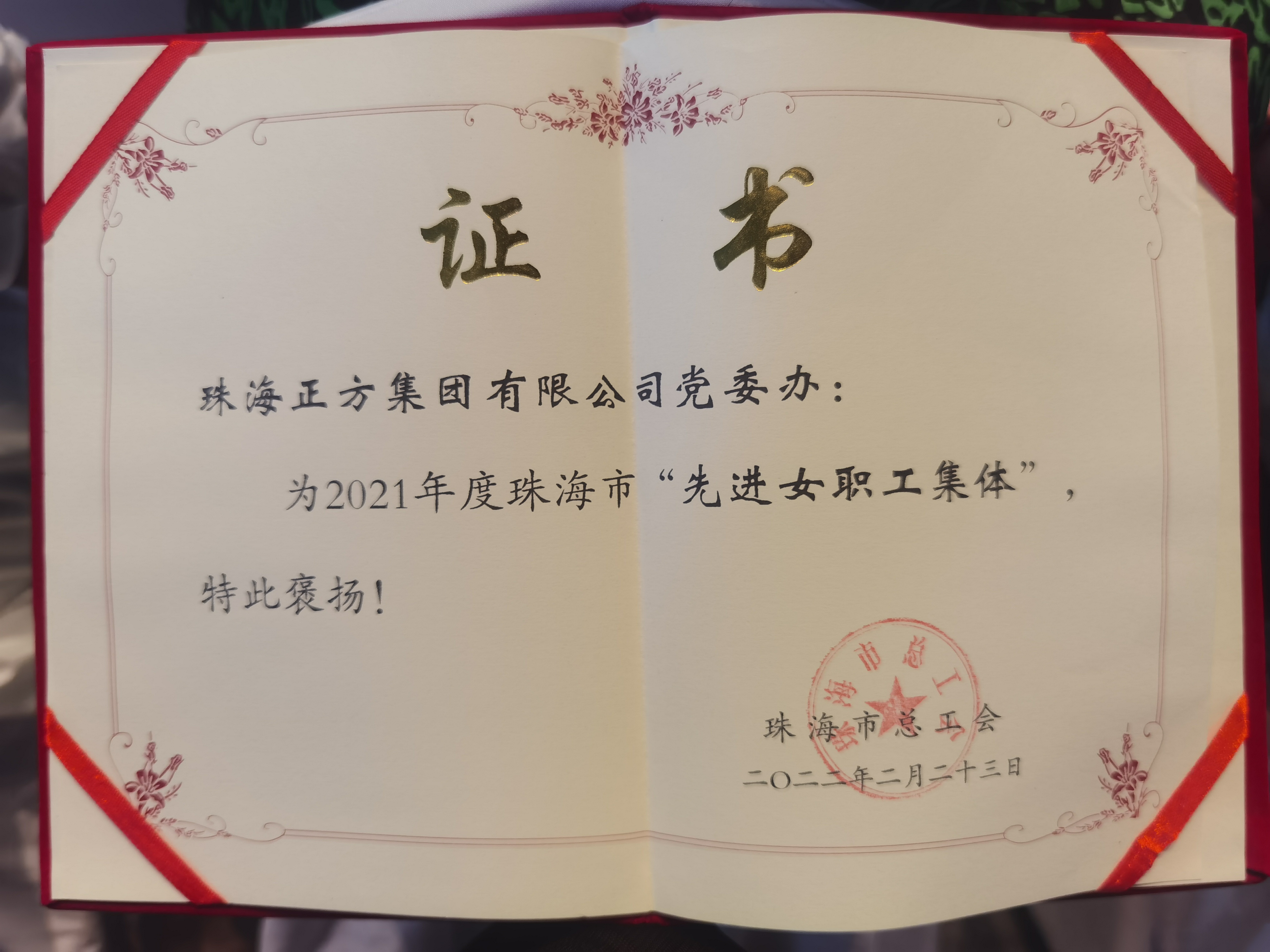 為弘揚(yáng)勞模精神、勞動(dòng)精神及工匠精神,激勵(lì)廣大女職工奮進(jìn)新征程、建功新時(shí)代,近日,珠海市總工會(huì)對(duì)30個(gè)“先進(jìn)集體”予以通報(bào)表?yè)P(yáng),珠海正方集團(tuán)有限公司黨委辦獲得“2021年度珠海市‘先進(jìn)女職工集體’”榮譽(yù)稱號(hào)。