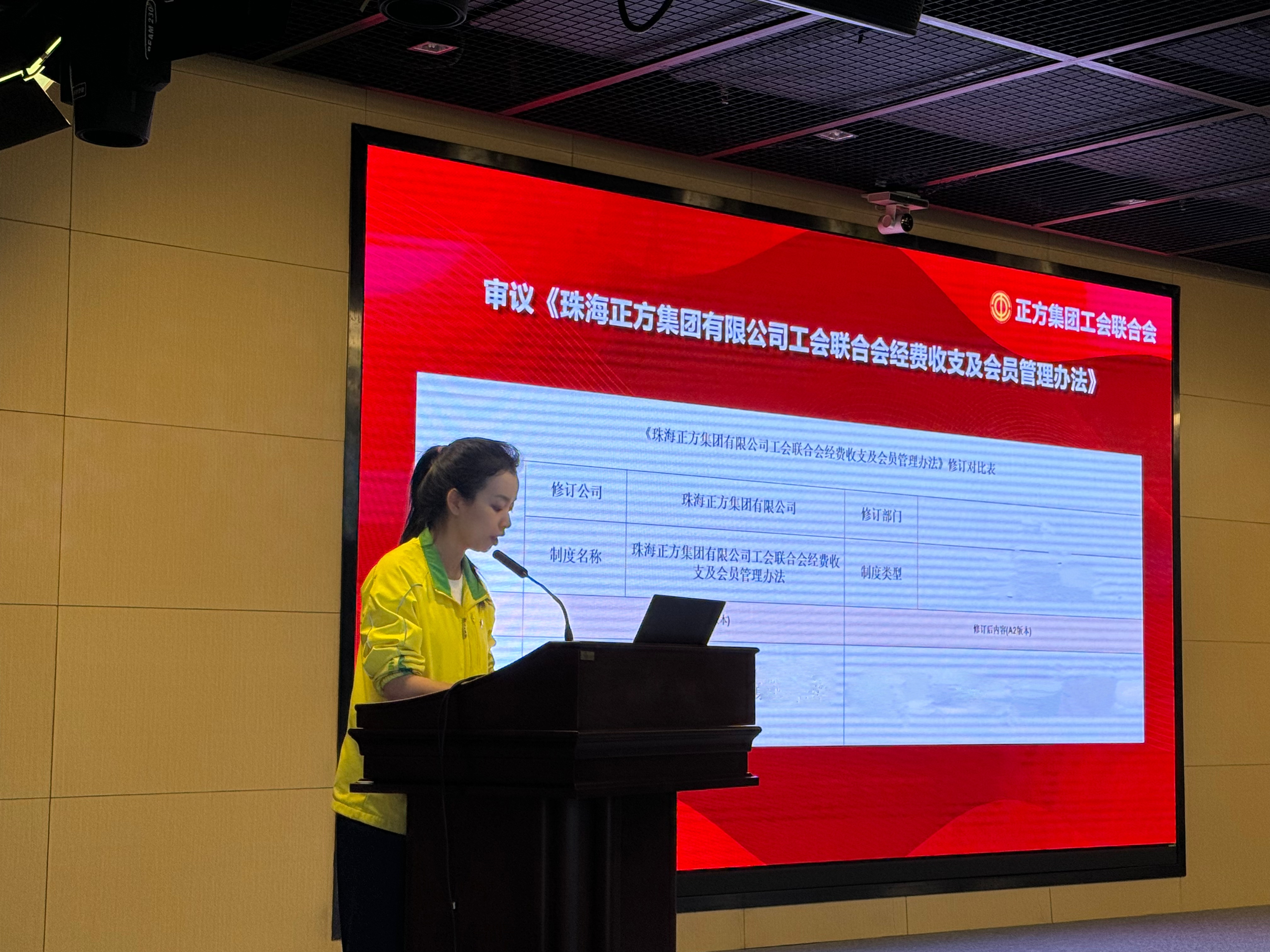 △黨委辦群團(tuán)副經(jīng)理黃思雅匯報(bào)《珠海正方集團(tuán)有限公司工會(huì)聯(lián)合會(huì)經(jīng)費(fèi)收支及會(huì)員管理辦法》