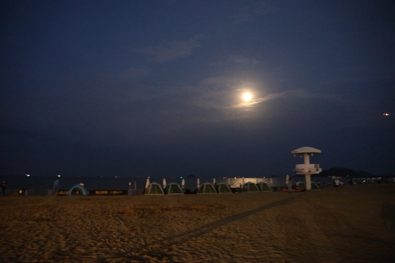 △美好的沙灘賞月畫面