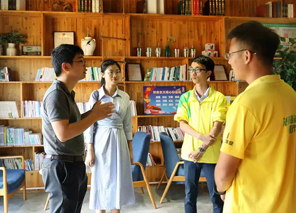 △共青團(tuán)香洲區(qū)委員會(huì)馬昱書(shū)記、許超群副書(shū)記對(duì)正方志愿服務(wù)示范崗的設(shè)置情況進(jìn)行考察