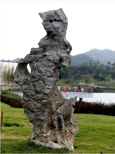 記者看到,在園區(qū)向日葵花海旁,立著一塊近2米高、約6噸重的太湖石;另一側(cè),高大羅漢松景觀樹木旁則“側(cè)臥”了一塊高逾1米、重達(dá)13噸,形似“睡美人”的景觀太湖石,給園區(qū)增添了一道別致的景觀。