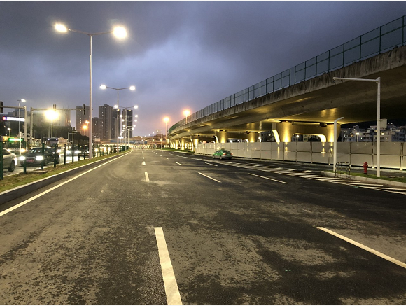 據(jù)珠海市香洲正方控股有限公司總經(jīng)理助理張有文介紹,立交橋燈光亮化工程包括功能性景觀照明和裝飾性景觀照明兩部分;除人行通道區(qū)域外,其他區(qū)域都屬于景觀照明的范圍。香洲正方通過在橋墩側(cè)面設(shè)置暖色調(diào)壁燈,將橋身以及周圍環(huán)境點(diǎn)亮,不僅實(shí)現(xiàn)了沿線夜景的可觀性,點(diǎn)綴了珠海夜景,也方便了車輛駕以及行人通行,橋底的安全性也大為提高。