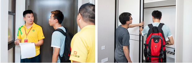 家的品質(zhì)看在眼里才放心,為保證交給業(yè)主一個滿意的家,在驗房環(huán)節(jié),每戶業(yè)主家庭均有兩位驗房師陪同服務(wù),及時解答和處理業(yè)主問題,保證業(yè)主滿意,讓每一位業(yè)主感受到蔚藍(lán)公館的滿滿誠意!