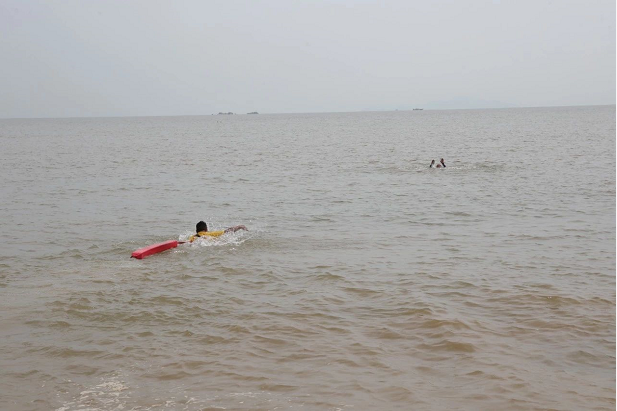 只見香洲正方救生員攜帶裝備從不同方向迅速向溺水者游去,最先到達(dá)的救生員將溺水者頭部托出水面,然后在其他救生員的共同協(xié)作下將溺水者抬入救生艇內(nèi),快速滑向岸邊的沙灘,就地進(jìn)行心肺復(fù)蘇搶救,香洲區(qū)衛(wèi)生健康局調(diào)派的醫(yī)護(hù)人員也趕到現(xiàn)場參與搶救。