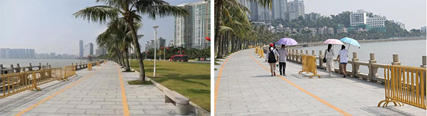 此外,他們還提前來(lái)到情侶南路,對(duì)沿線(xiàn)的海邊護(hù)欄、燈柱、花灑水噴頭、垃圾桶、臨時(shí)工地、電纜、各類(lèi)管道等市政設(shè)施一寸寸地排查整改;對(duì)全段所有的電箱、箱變、路燈進(jìn)行漏電檢查;對(duì)所有下沉井蓋進(jìn)行檢查,遇到問(wèn)題隱患立即更換;同時(shí),對(duì)沿線(xiàn)綠植進(jìn)行美化修剪、草皮補(bǔ)植、時(shí)花補(bǔ)種,提高沿線(xiàn)美觀(guān)性;檢查商品銷(xiāo)售點(diǎn)食品是否安全,轄區(qū)安全警示標(biāo)識(shí)是否全面、充足等。