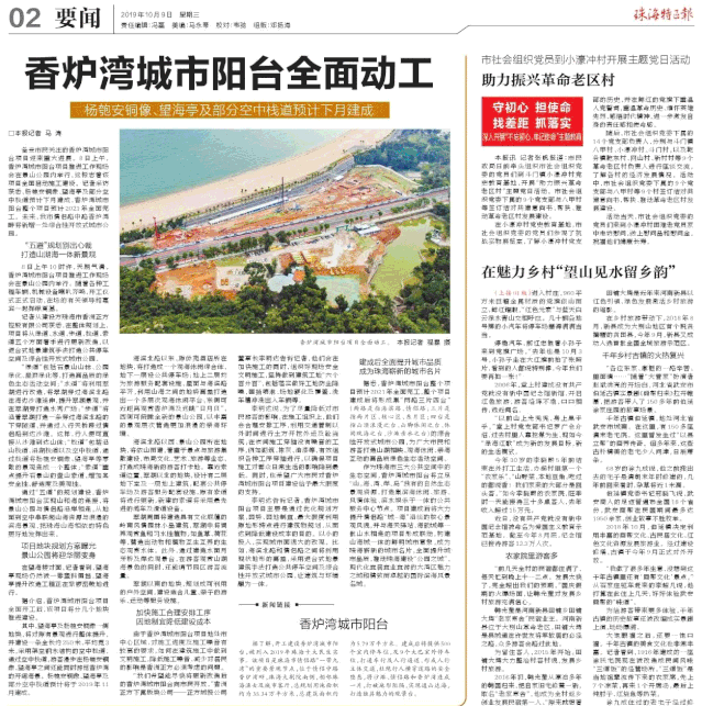 開工建設(shè)香爐灣城市陽臺,被列入2019年珠海十大民生實(shí)事。該項(xiàng)目是珠海市情侶路“一帶九灣”的重要景觀節(jié)點(diǎn),位于情侶中路香爐灣畔,珠海大劇院南側(cè),相鄰珠海漁女及城市客廳,總規(guī)劃用地面積約為35.34萬平方米,總建筑面積約為5.79萬平方米。