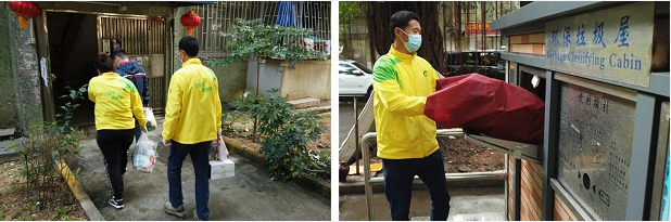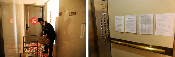 他們到隔離居民住處了解詳細(xì)的實(shí)時(shí)動(dòng)態(tài),耐心做好人員引導(dǎo)和心理疏導(dǎo)工作,協(xié)調(diào)做好各類物資保障,幫助購買各類生活用品、配送餐食飲品、傾倒垃圾。
