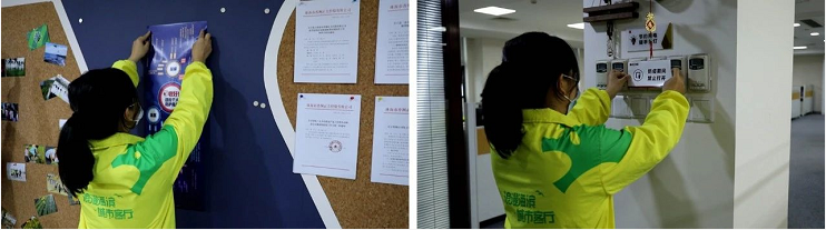 確保工作環(huán)境清潔衛(wèi)生,停止集中式中央空調(diào)的使用,保持室內(nèi)空氣流通。每日對(duì)公司各個(gè)區(qū)域進(jìn)行全面消毒殺菌處理,發(fā)放并提醒員工佩戴口罩、測量體溫,設(shè)立異常員工隔離區(qū)域。定期對(duì)員工宿舍開展清潔消殺工作,保持環(huán)境整潔。云創(chuàng)園云餐廳一律取消堂食,改為領(lǐng)餐制。