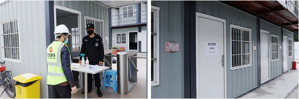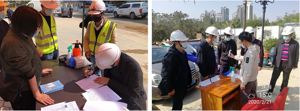 項(xiàng)目工地實(shí)行全封閉管理,在施工現(xiàn)場入口設(shè)置體溫檢測點(diǎn),配備隔離觀察房,儲(chǔ)備口罩、消毒液和測溫槍等防疫物資,每天對(duì)辦公區(qū)、生活區(qū)、食堂、廁所進(jìn)行兩次全面消毒。