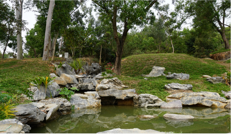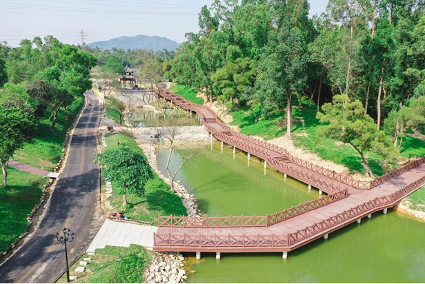 為實現(xiàn)這一設(shè)計思路,在市、區(qū)領(lǐng)導(dǎo)的關(guān)心指導(dǎo)下,香洲正方反復(fù)現(xiàn)場實地踏勘,通過最大限度地保留原有的山、水、草木等生態(tài)特征,不斷發(fā)掘原地貌特征中的景觀優(yōu)勢,結(jié)合傳統(tǒng)嶺南建筑風(fēng)格,對亭、臺、樓、榭、橋、廊、假山等景觀節(jié)點細心雕琢,令傳統(tǒng)建筑元素與現(xiàn)代舒適性需求充分結(jié)合,最終確定了總體規(guī)劃方案。