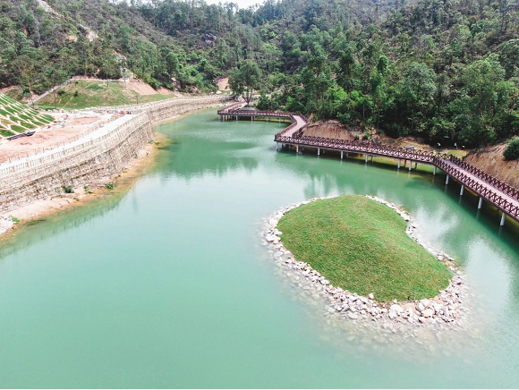 “這里的每一處規(guī)劃設(shè)計,都可謂‘用心良苦’”,香洲區(qū)委常委、副區(qū)長彭甦介紹,“沒砍一棵樹、也沒買一棵樹”,秉承“可達、可游、可憩”和“安全、生態(tài)、節(jié)約”的理念打造香山湖二期。