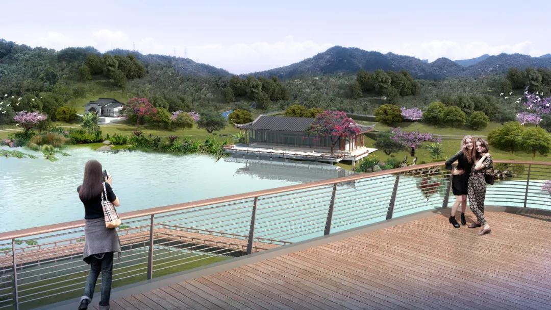 觀水段位于香山湖公園至大鏡山公園,觀城段位于大鏡山公園至海天公園。每段長度均為4.3公里,游覽者漫步于步道,可實現(xiàn)360度空中觀看香山湖公園。大鏡山水庫等沿線景觀,通過觀水、觀城等視角實現(xiàn)移步異景的視覺體驗。