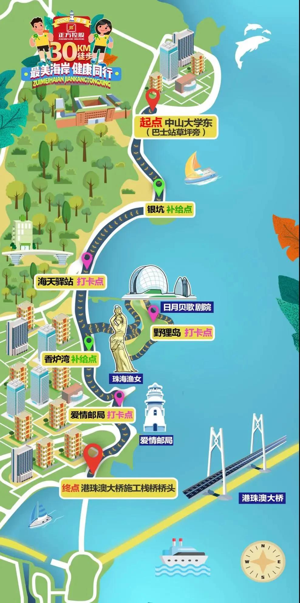 徒步最美海岸,領(lǐng)略珠海風(fēng)情,珠海30公里徒步活動(dòng)又來了。12月12日,由正方控股冠名的“2020正方控股·最美海岸 健康同行·珠海30公里徒步”活動(dòng)火熱舉行?;顒?dòng)起點(diǎn)設(shè)于中山大學(xué)珠海校區(qū),終點(diǎn)設(shè)于港珠澳大橋施工棧橋橋頭,沿途貫穿了珠海最具魅力的城市元素。