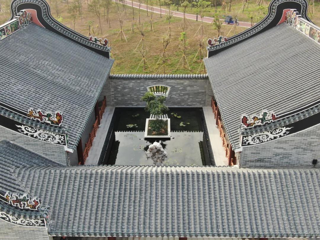 充滿嶺南建筑特色的鑊耳山墻、色彩艷麗的灰塑博古脊、工藝精美的木雕、磚雕、石雕等布滿整個三期廣場。