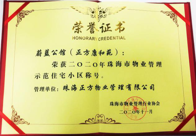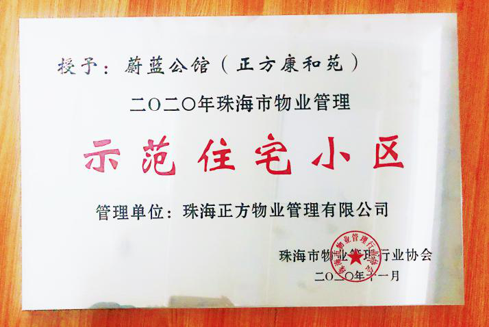 珠海市物業(yè)管理示范項(xiàng)目驗(yàn)收組經(jīng)過多次現(xiàn)場專項(xiàng)檢查并定期進(jìn)行抽查,蔚藍(lán)公館(正方康和苑)在11月13日榮獲“2020年珠海市物業(yè)管理示范項(xiàng)目”榮譽(yù)稱號。