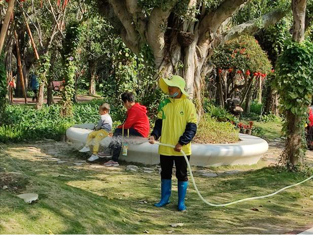 作為城市美容師、游客護航員,在香洲正方管養(yǎng)的140多個公園中,他們澆灌植物、撿拾垃圾、人流疏導、景點站崗。