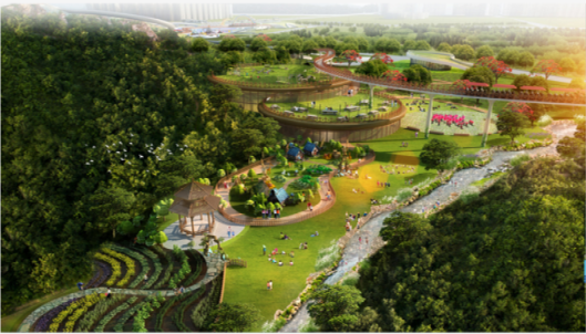 項目堅持生態(tài)優(yōu)先的建設(shè)理念,結(jié)合現(xiàn)狀地貌,規(guī)劃創(chuàng)意樂園、自然探索、城市地標三大主題區(qū),按照兒童不同年齡段進行功能劃分,打造“自然生態(tài)、科普教育、親子運動”為一體的綜合性市級兒童公園。