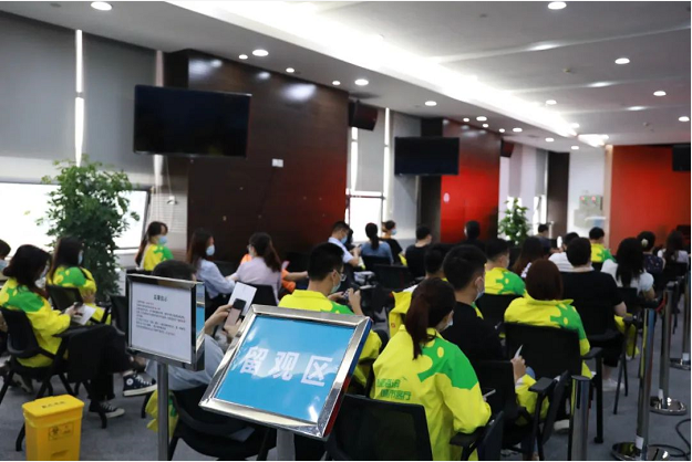 除了在14樓多功能廳設(shè)置等候區(qū)外,正方控股為提高接種效率,確保接種安全有序進行,還在正方· 云創(chuàng)園1樓大廳安排了2個等候區(qū),通過加強引導(dǎo)、分批分次等舉措,極大地滿足了符合接種條件的職工按需接種、高效接種。