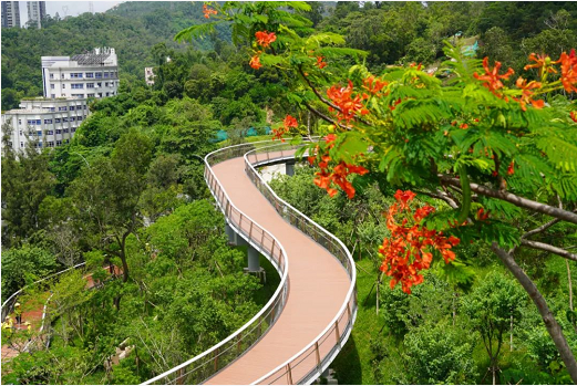 雞公山示范段位于情侶中路海天公園南側(cè),是繼香山湖示范段后,項目建成的又一重要節(jié)點工程。棧道全長1100米,沿雞公山段蜿蜒而上,將整個山體延展開來,形成山海相望,海天成趣的景象。云道與海天公園、珠海市博物館相鄰,還有海天公園停車場,為市民游客提供便利。