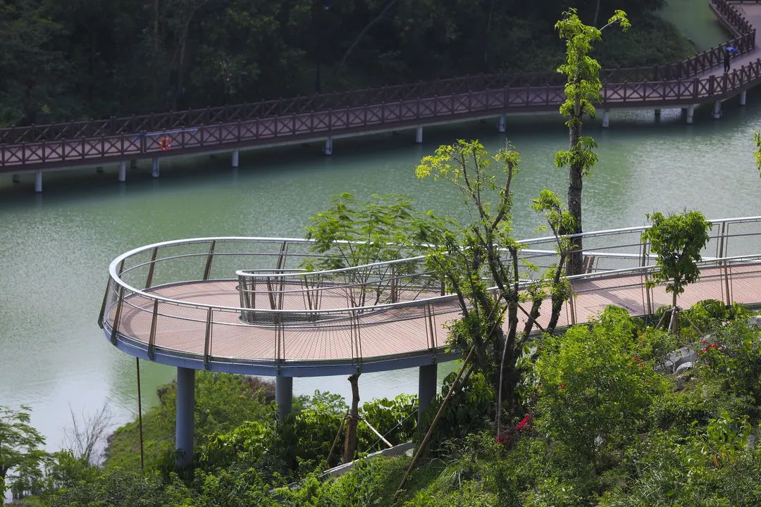 漫步在香山云道香山湖段上,3.6米寬的步道走起來寬闊平穩(wěn),不知不覺中便來到了海拔105米的制高點,向前遠眺,視野開闊,城市風光與湖光山色盡收眼底。