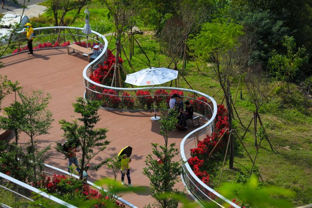 在“以人為本”的設(shè)計理念下,游覽者避免了登山拾階而上對膝蓋的損傷,踏步云道如履平地,防滑木制材料增大了步道與鞋底的摩擦力,無論是中青年,還是老人、小孩,都可以輕松登上山頂,盡享城市與自然的絕美風光。