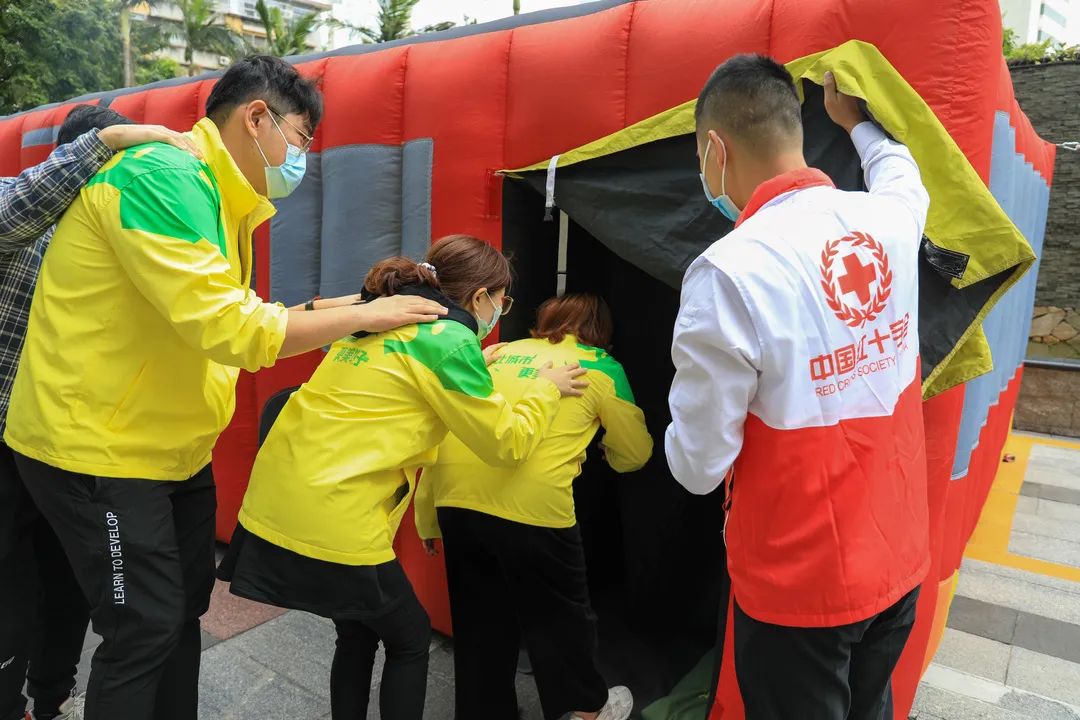 總指揮接到警情,立即發(fā)出滅火救援指令,各組按照分工實(shí)施救援。云創(chuàng)園全體人員的進(jìn)行應(yīng)急疏散。本次消防綜合應(yīng)急演練還設(shè)置了模擬穿越煙霧逃生通道、消防水帶連接及噴水、滅火器滅火以及CPR心肺復(fù)蘇等演練內(nèi)容,在“沉浸式”的模擬場景中,讓大家學(xué)會各類消防安全知識和技能,提高自身應(yīng)變能力。