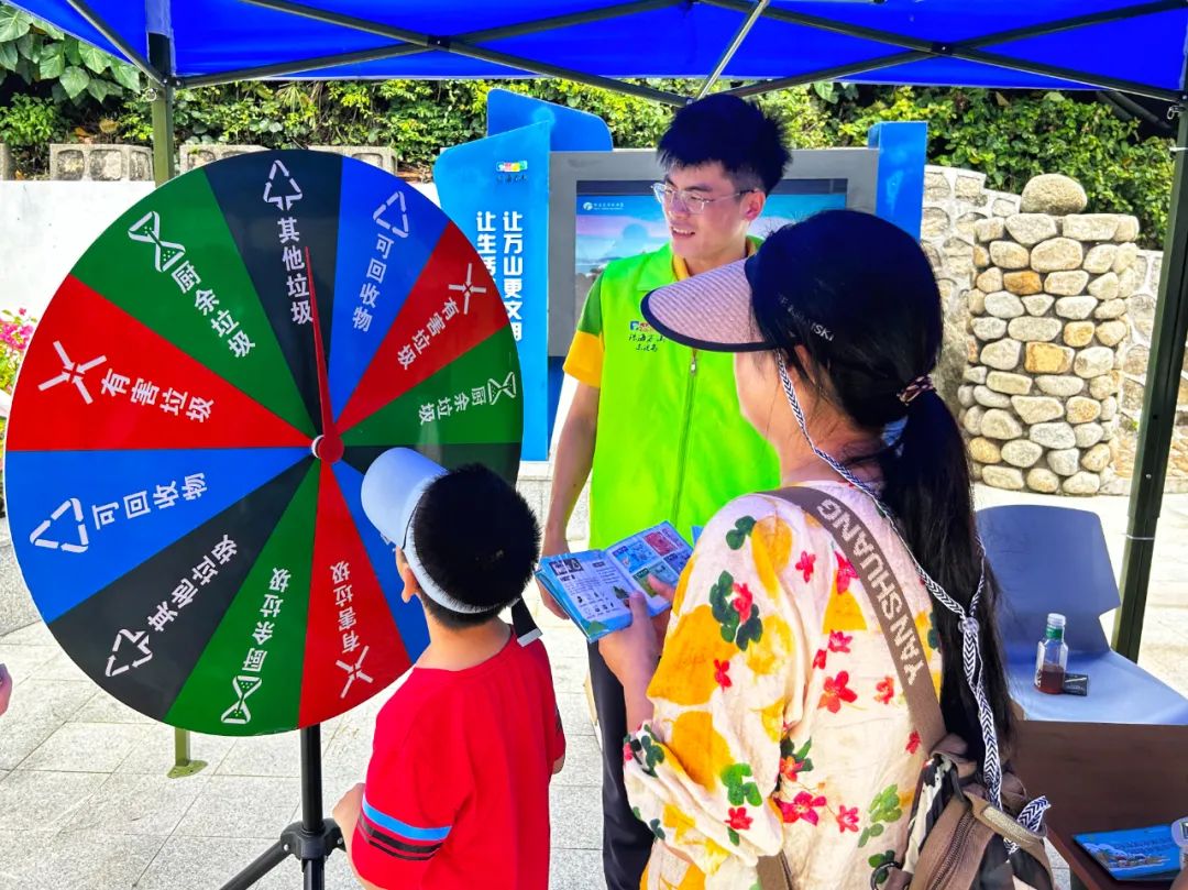 “可回收物應(yīng)投入什么顏色垃圾桶、舊衣服屬于什么垃圾、廢舊熒光燈管屬于什么垃圾?”活動現(xiàn)場,居民、游客積極參與知識競答、轉(zhuǎn)盤互動等小游戲,活動志愿者發(fā)放垃圾分類宣傳手冊,幫助大家掌握常見的生活垃圾分類要領(lǐng),倡導(dǎo)從自身做起,樹立綠色文明低碳生活理念。理論與實(shí)踐相結(jié)合的方式,調(diào)動起大家的學(xué)習(xí)熱情,令垃圾分類知識深入人心。據(jù)悉,活動當(dāng)天共發(fā)放垃圾分類宣傳手冊200本,參加互動游戲的居民、游客還收到定制版垃圾分類帆布包、鑰匙扣等小禮品。