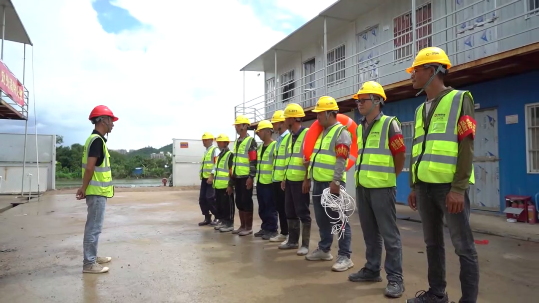 演練中,項目部防臺防汛應(yīng)急預(yù)案并結(jié)合現(xiàn)場實際情況,模擬“受臺風(fēng)暴雨影響,項目緊急撤離,撤離過程中工人落水”以及“受臺風(fēng)暴雨影響,前山河水涌入項目部”等險情。項目部迅速啟動防汛應(yīng)急救援預(yù)案,在正方集團(tuán)三防應(yīng)急指揮部指揮下,安排人員撤離、救治傷員、前山河河堤加固加高,迅速的完成了人員疏散及救治傷員,有效阻斷河水涌入項目。各演練小組分工明確、協(xié)同作戰(zhàn),演練流程銜接有序,演練取得圓滿成功。