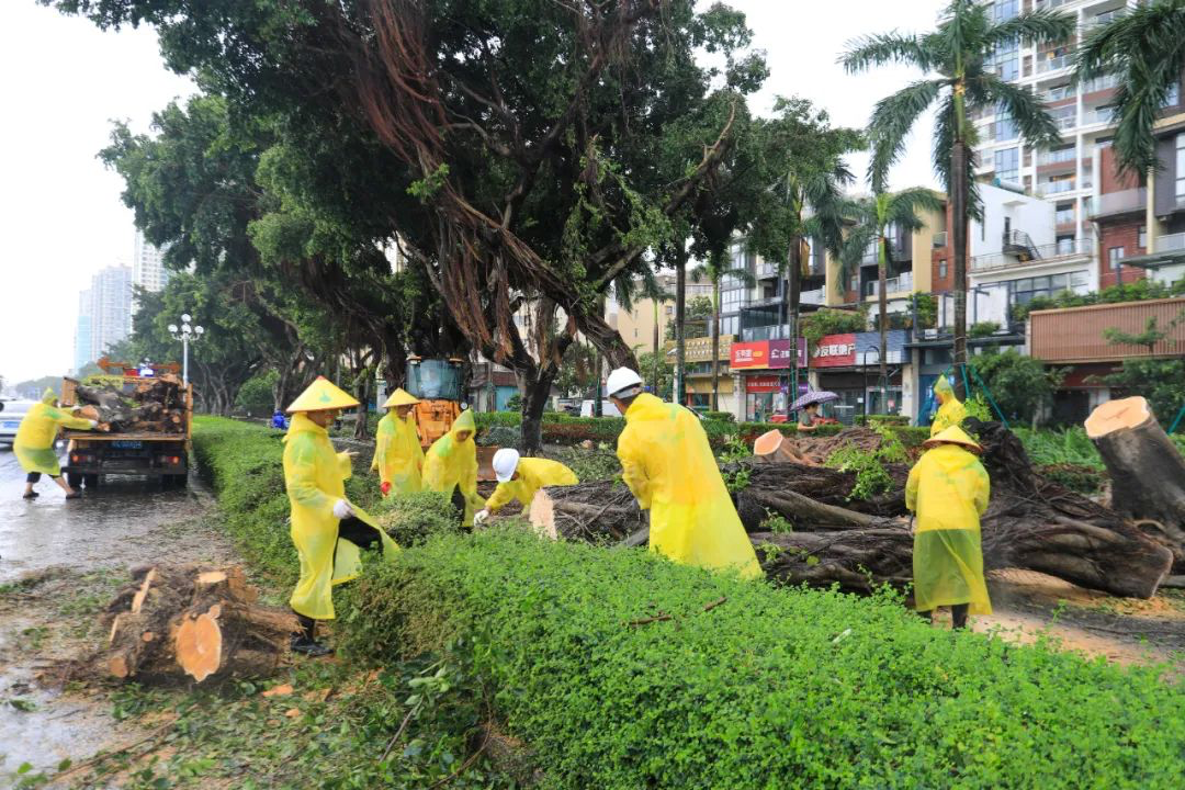 臺(tái)風(fēng)過(guò)后,情侶路等地段及多個(gè)公園園區(qū)出現(xiàn)了樹(shù)木折斷或倒伏的情況。正方集團(tuán)各應(yīng)急搶險(xiǎn)隊(duì)伍立即行動(dòng),在最短時(shí)間內(nèi)增加人力和機(jī)械設(shè)備投入,出動(dòng)各類(lèi)應(yīng)急車(chē)輛65部,超55臺(tái)大型機(jī)械清理倒伏樹(shù)木、廣告牌、破損圍擋等路面障礙,并針對(duì)臨近山體部位道路及時(shí)開(kāi)展流沙清理,疏通下水口,第一時(shí)間恢復(fù)交通。