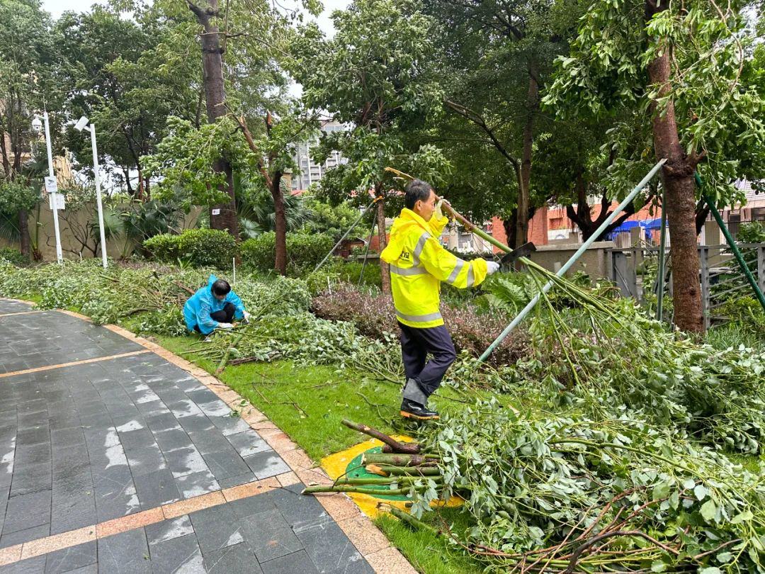 9月2日3時(shí)30分前后,臺(tái)風(fēng)“蘇拉”在珠海金灣區(qū)沿海地區(qū)登陸,狂風(fēng)裹挾大雨襲來(lái)。當(dāng)日上午8時(shí),正方集團(tuán)迅速響應(yīng)救災(zāi)指令并立即行動(dòng),派出近2000名應(yīng)急搶險(xiǎn)人員,在惡劣的天氣條件下奔赴所管養(yǎng)區(qū)域和香洲多個(gè)街道社區(qū),迅速開(kāi)展清障保通工作,保障城市運(yùn)行安全順暢。