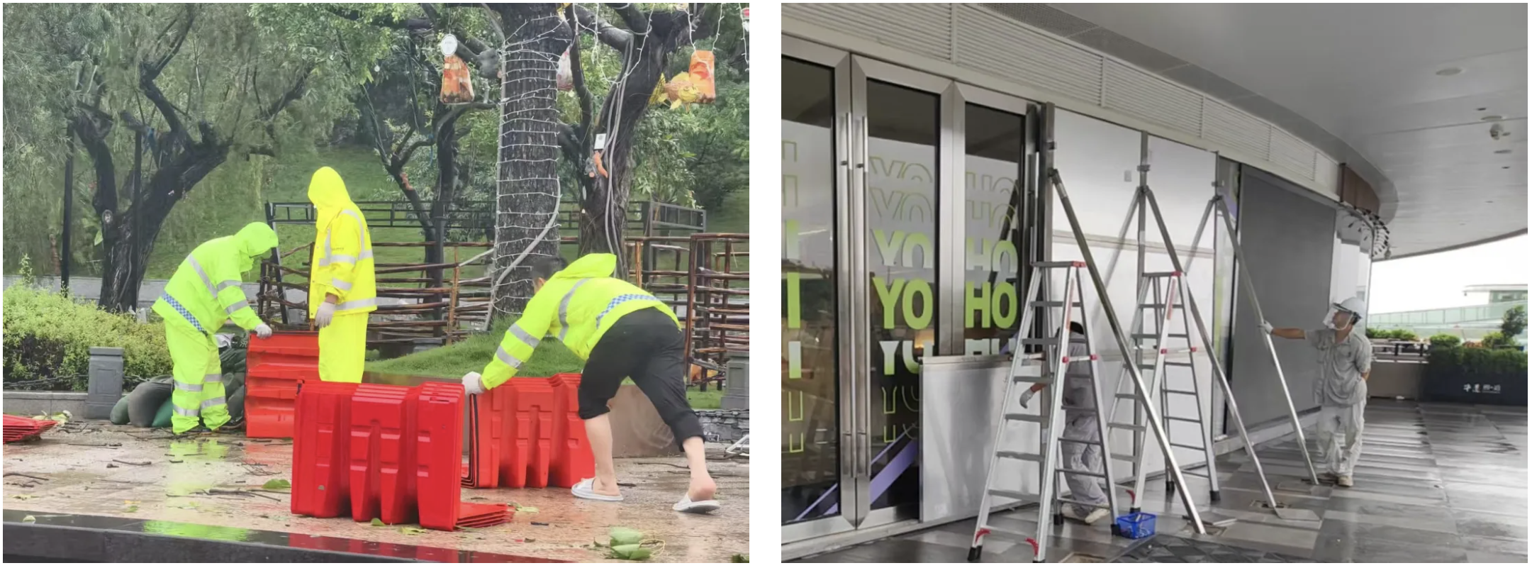 搶險隊員們對各項目工地、社區(qū)公園、沙灘及在運營商場進行細致巡查,對發(fā)現(xiàn)的損毀設(shè)施立即進行應(yīng)急維修或安全圍蔽,消除安全隱患。