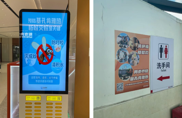 在推進(jìn)環(huán)境整治的同時(shí),正方集團(tuán)積極拓展宣傳渠道,在管養(yǎng)公園、運(yùn)營商圈等重點(diǎn)公共場(chǎng)所,通過張貼防蚊標(biāo)語、電子屏滾動(dòng)播放防蚊公益海報(bào)等方式,廣泛宣傳蚊媒傳染病危害與防護(hù)要點(diǎn),普及“清積水、防孳生”等核心知識(shí),切實(shí)增強(qiáng)市民自我防護(hù)意識(shí)和能力。