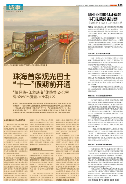 乘坐雙層觀光巴士,徜徉于情侶路,直達(dá)沿線各個景點,感受“浪漫之城”的獨特魅力……記者從珠海公交集團(tuán)獲悉,首條珠海觀光巴士專線即將上線。該條線路一共52公里,起名“情侶路-印象珠?!?,將于“十一”前在情侶路正式開行。與一般公交車不同的是,觀光巴士上,有整車5GWiFi覆蓋,并設(shè)有VR體驗區(qū),游客車上即可玩轉(zhuǎn)珠海眾多海島,探索虛擬海底世界;車廂提供自助飲料售賣機,提供充電寶服務(wù)。