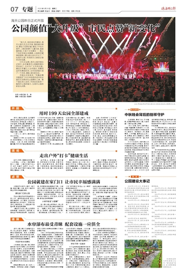 “前幾天,我聽單位同事講,海天公園今天正式開園,管養(yǎng)提升期間,建設(shè)了四季步道、鋪設(shè)了中央大草坪,二期還新建了兒童樂園、溫室植物園、打造了水簾瀑布……晚上下班后專程過來瞧瞧,公園果然建得很漂亮,跟以前比變化太大了。”在海天公園,市民陳女士接受記者采訪時(shí)說道。