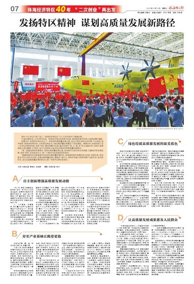 回望過去,珠海經(jīng)濟(jì)特區(qū)走出了一條獨(dú)特的高質(zhì)量發(fā)展之路,成立以來形成的生態(tài)環(huán)境、產(chǎn)業(yè)品質(zhì)、城市格局、制度創(chuàng)新等優(yōu)勢(shì),為珠海在新起點(diǎn)上推動(dòng)高質(zhì)量發(fā)展奠定了堅(jiān)實(shí)基礎(chǔ)。展望未來,珠海吹響了進(jìn)一步深化改革的號(hào)角,搶抓“雙區(qū)”建設(shè)等重大機(jī)遇,重點(diǎn)實(shí)施好“特、大、高、多”四大戰(zhàn)略任務(wù),加快打造粵港澳大灣區(qū)重要門戶樞紐、珠江口西岸核心城市和沿海經(jīng)濟(jì)帶高質(zhì)量發(fā)展典范。