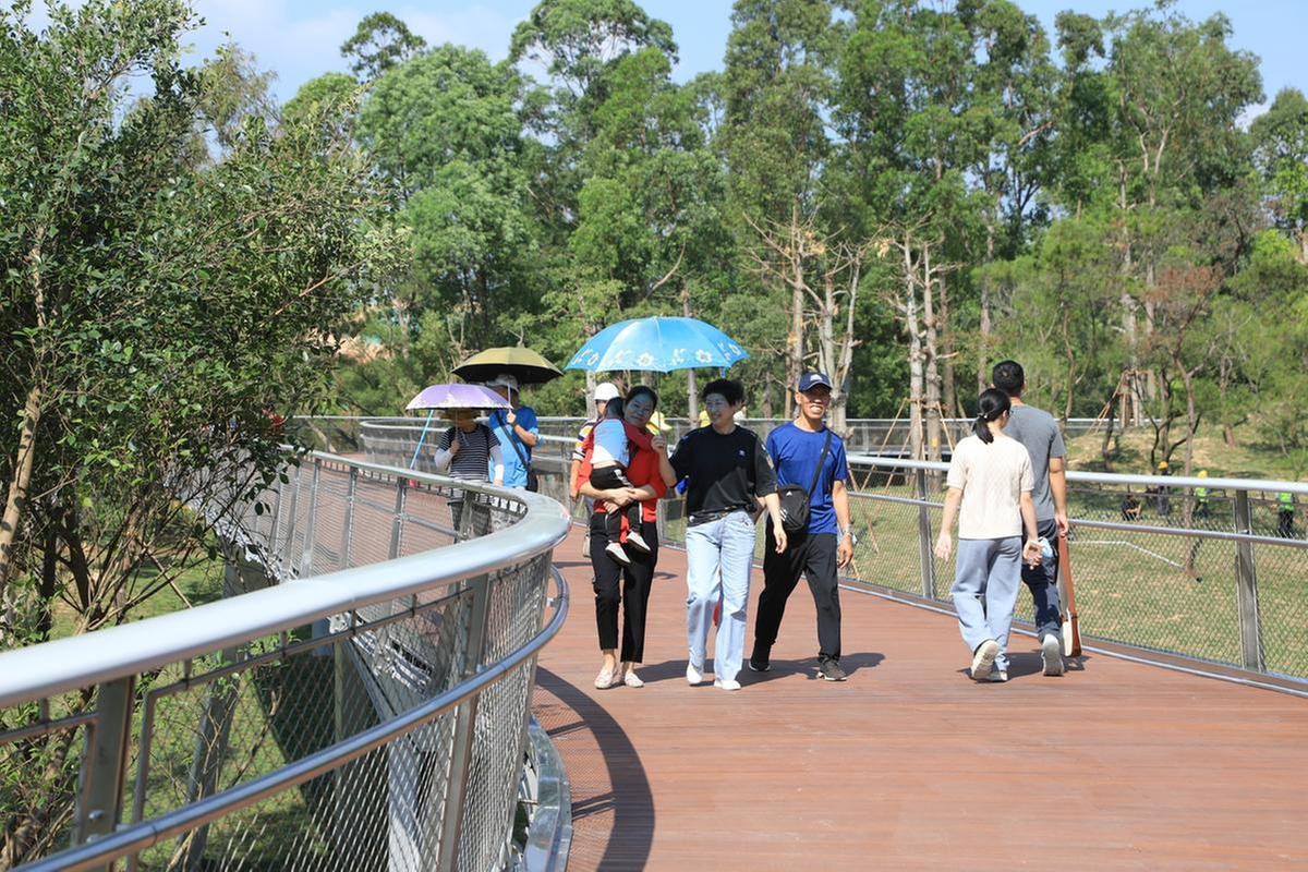 陽(yáng)光普照,鴛鴦戲水,綠意宜人。站在嶄新的鳳凰山“云棧道”上,湖光山色、高樓林立盡收眼底。11月20日,鳳凰山步道香山湖示范段正式開(kāi)放,成為珠海向市民開(kāi)放的第一條山地步道,當(dāng)天即迎來(lái)了市民、游客約1.5萬(wàn)人次。開(kāi)放后的首個(gè)周末,日客流量約4萬(wàn)人次。