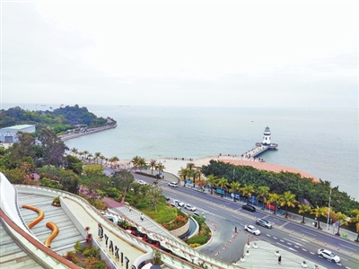 從港灣大道到情侶路,沿線多個(gè)停車場(chǎng)也為游客流連駐足各類“網(wǎng)紅打卡地”提供了方便。例如港灣大道沿線的紅花山黨建公園。由登山步道一路前行,不僅能看到隱藏在樹木繁盛山谷中的珠海版“小九寨溝”,還能在視頻平臺(tái)刷屏的大船造型步道上俯瞰整個(gè)唐家灣海灘,讓人瞬間心曠神怡。相似的還有海天驛站,將車停在驛站配套停車場(chǎng)或海天公園停車場(chǎng),即可感受伸入海中的景觀棧道。在陸海相融的棧道上舉起相機(jī),城市地標(biāo)美景悉數(shù)被相機(jī)取景框收納。