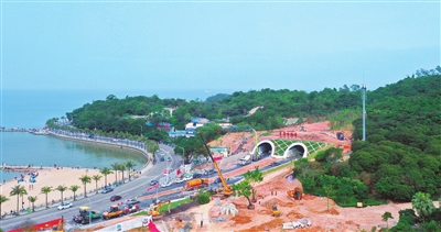 菱角咀隧道北起海濱公園,南至海濱泳場服務(wù)中心(正方優(yōu)和匯城市客廳)停車場入口,線路總長約960米,其中隧道長約340米,分為東西雙線,雙向4車道。隧道的作用在于“截彎取直”,提升情侶中路菱角咀段的行車效率,分流周邊路網(wǎng)的交通壓力。通車后,隧道由北往南行車出隧道口就是愛情郵局、燈塔,由南往北就是香爐灣沙灘。一座隧道達(dá)到“串珠成線”的效果,把周邊的海濱公園、城市陽臺(tái)、香爐灣沙灘、海濱泳場、愛情郵局等濱海景觀串聯(lián)起來。