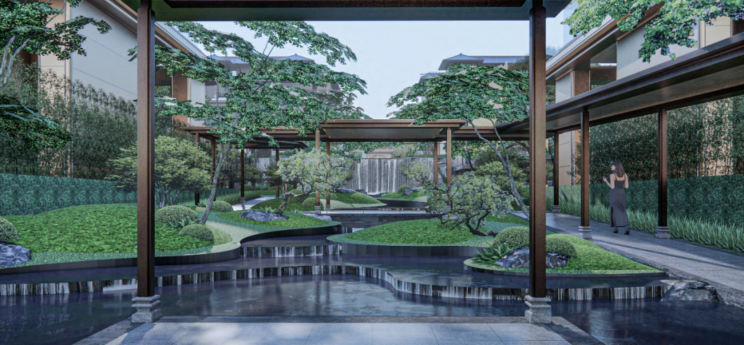 而社區(qū)內(nèi)部,則采用正方首創(chuàng)、珠海唯一的新嶺南風(fēng)格園林,參考吸取嶺南四大名園精華,打造“兩軸三庭,五進(jìn)六園”景觀布局。