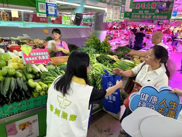 禁毒宣傳“進(jìn)市場(chǎng)”活動(dòng),以群眾“菜籃子”為載體,通過詼諧有趣的標(biāo)語(yǔ),將禁毒知識(shí)裝進(jìn)群眾的心中,增強(qiáng)廣大群眾識(shí)毒、防毒、拒毒意識(shí)和能力,營(yíng)造全民禁毒濃厚氛圍。