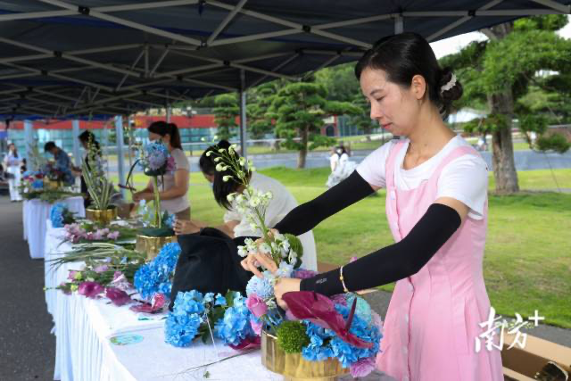 據(jù)了解,香洲區(qū)首屆園藝景觀大賽包含了“綠美街巷”“街頭景觀”“理想花園”“花植風(fēng)采”“藝術(shù)插花”等比賽。頒獎(jiǎng)前,大賽舉行了最后一場(chǎng)比拼——“藝術(shù)插花”比賽。決賽選手根據(jù)現(xiàn)場(chǎng)提供的花卉素材,開始他們的藝術(shù)創(chuàng)作。評(píng)審反復(fù)觀察,為選手的作品打分。來賓們也紛紛前來觀看,交流插花藝術(shù)經(jīng)驗(yàn)。