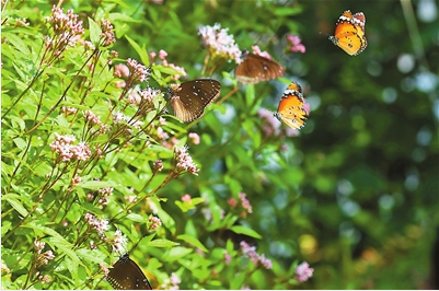 一只、兩只、三只……正是珠海良好的生態(tài)環(huán)境,引來成群的蝴蝶在此聚集越冬。通常,氣溫下降到15攝氏度以下,大部分蝴蝶會以蛹、卵或幼蟲的形式越冬,只有一些斑蝶會如同候鳥般向南遷徙,躲避低溫的氣候,尋覓繁衍生息的樂土。
