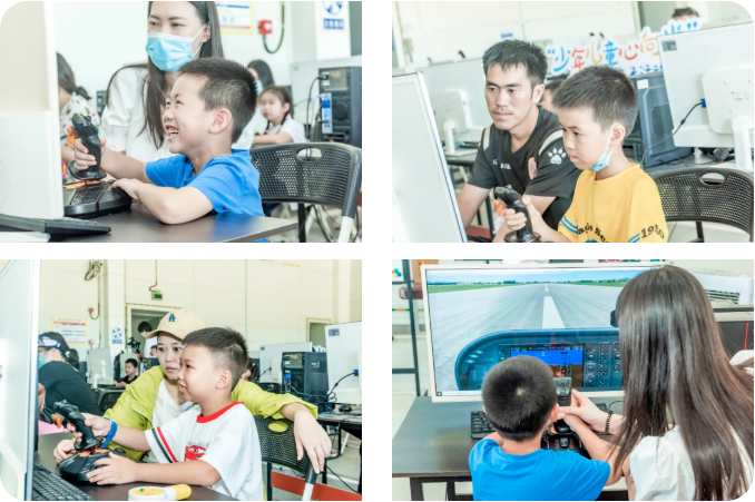 隨后,進(jìn)入到了航天知識(shí)分享和模擬器實(shí)踐操作環(huán)節(jié),資深的專業(yè)航空講師不僅給孩子們分享航空知識(shí),還介紹了模擬器的綜合儀表,導(dǎo)航儀表、油門、操縱桿等結(jié)構(gòu)及其操作方式,小朋友們一邊認(rèn)真地學(xué)習(xí)基本原理,一邊按照航空講師的步驟操作,完全沉浸在飛行模擬器、航模模擬器的現(xiàn)場實(shí)操中。“我也想開飛機(jī)在天上飛!”一個(gè)孩子興奮地對(duì)媽媽說道。